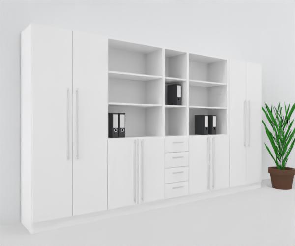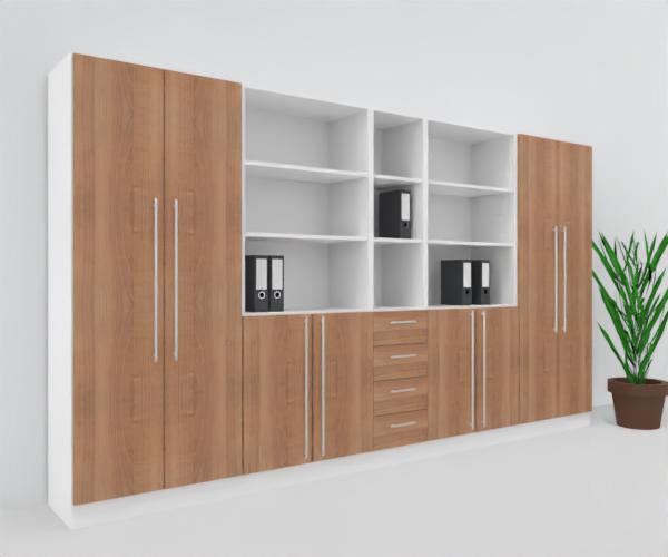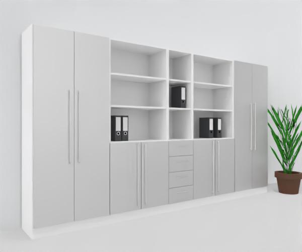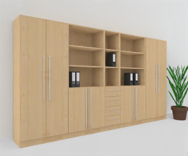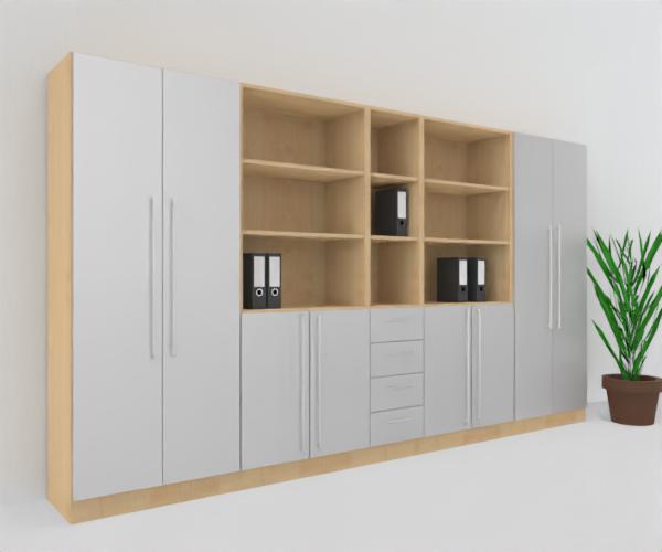 Schränke in Korpusbauweise 5 Ordnerhöhen, jeder Schrank kann für sich alleine gestellt werden. Schränke nicht abschließbar.