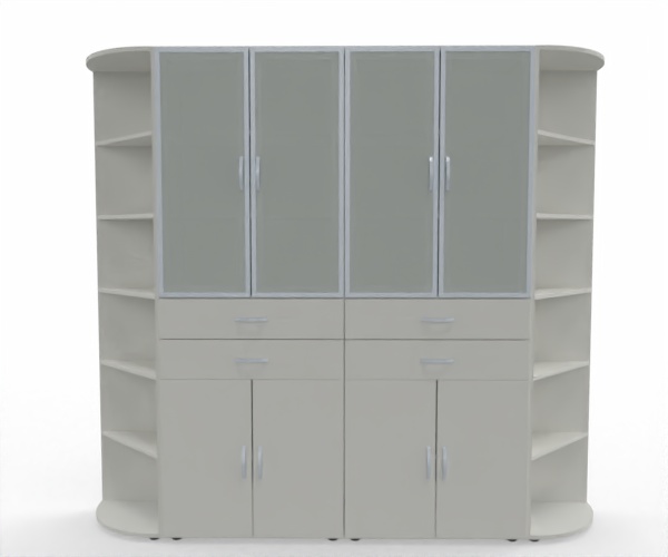 Fachböden, Ober-/Unterboden, Seitenwände und Holz-Türen 19 mm stark.