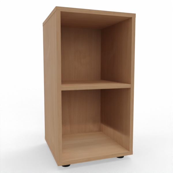 Aus Dreischicht-Feinspanplatte mit beidseitiger Melaminharz-Beschichtung, mit durchgehenden Ober- und Unterböden, Rückwand 3 mm eingenutet.
