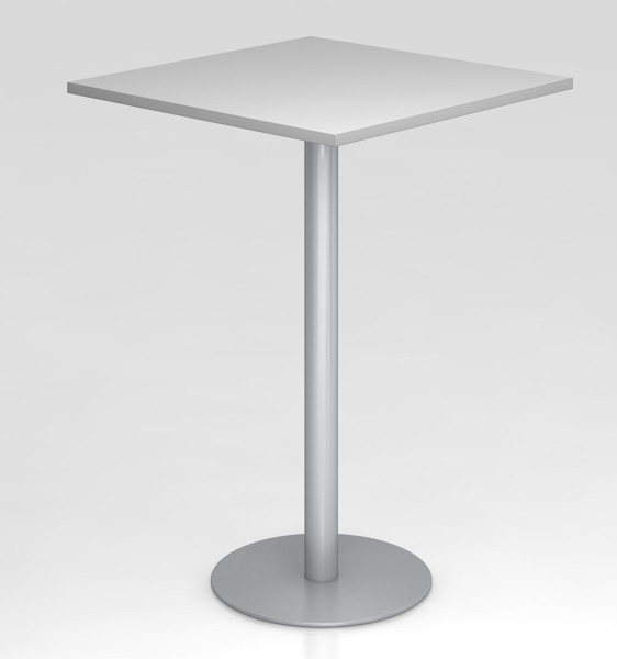 Tischsäule mit Durchmesser 7,6 cm. Tellerfuß Durchmesser 50 cm, silberfarben
