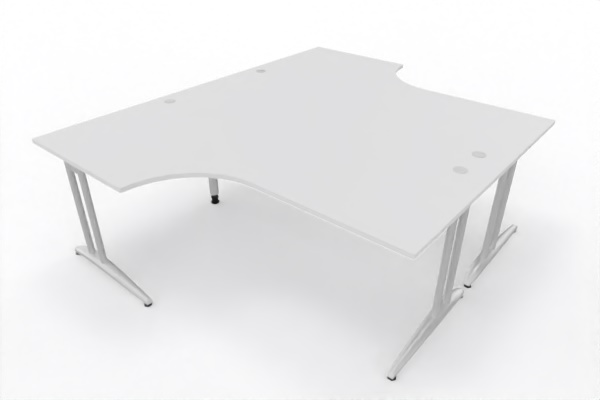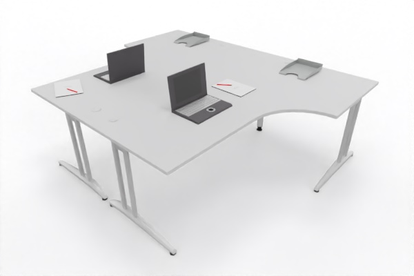 C-Fuß-Gestell aus Rundrohr 47 bzw. 35 mm Durchmesser, einbrennlackiert, silberfarben, Arbeitshöhe 74 cm.