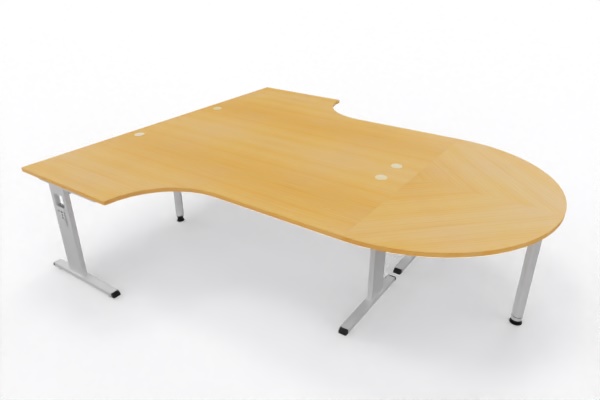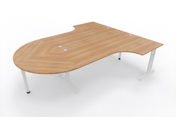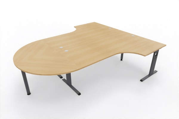 Tischplatte 25 mm stark, melaminharzbeschichtete Spanplatte nach DIN EN 14322, Emissionsklasse E1 E05 TSCA, mit 2 mm Kunststoffkante, mit Kabeldurchlass-Dosen.