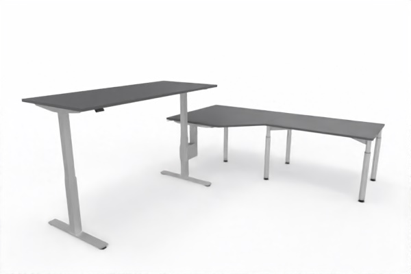 Elektrisch höhenverstellbarer Schreibtisch ermöglicht das Arbeiten im Sitzen und im Stehen.