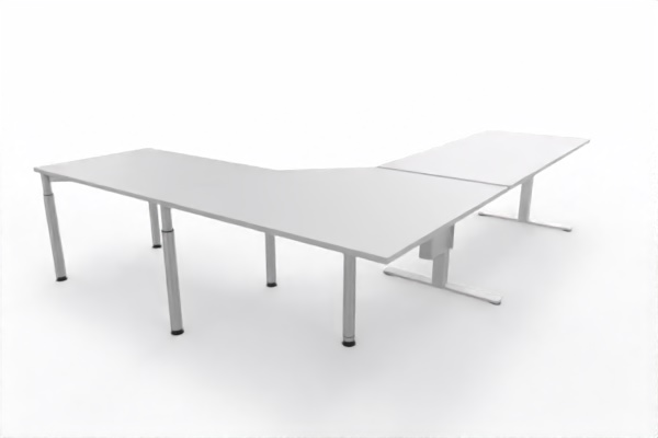 Nicht elektrisch höhenverstellbar, zum festen Anbau an die Trapezverkettungsplatte. Vierfußgestell mit zwei stabilen Quertraversen, Rechteckrohr 30 x 60 mm. Tischfüße Rundrohr Ø 60 mm, Höhe manuell einstellbar von 68 bis 82 cm, im Raster von 1 cm. Trapezverkettungsplatte max. belastbar bis 25 kg, Ansatztiefe 80 cm, mit Konsole und einem Stützfuß.