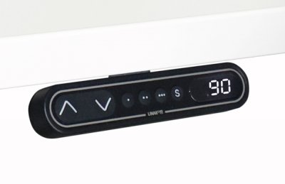 Display links oder rechts unter der Tischplatte montierbar, nach hinten verschiebbar. Anzeige schaltet bei Nicht-Bedienung aus. Stromverbrauch Standby 0,3 Watt
