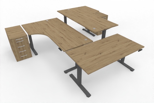 Elektrisch höhenverstellbare Schreibtische ermöglicht das Arbeiten im Sitzen und im Stehen.